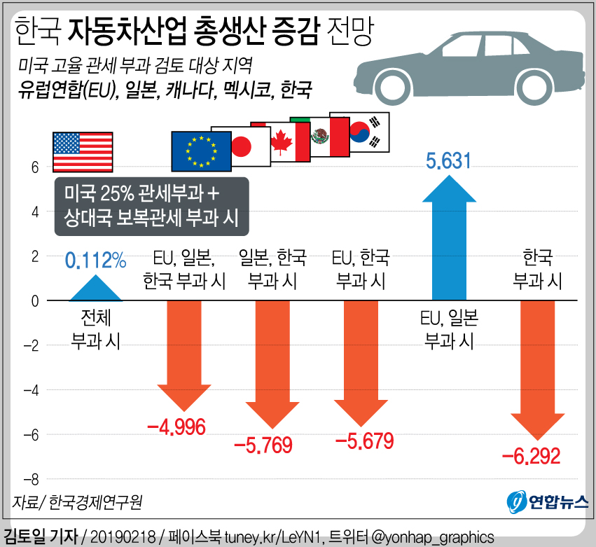 트럼프의 자동차 추가관세 도입에 대한 적극적인 대응 필요 : 무역확장법 232조 적용 예외국 지정, FTA 수정外 대정부 차원 통상외교적 활동 강화 필요